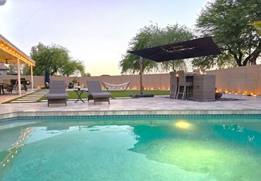 Whether you're taking a dip in the pool, lounging in the sun, or enjoying a meal al fresco, the Surprise Oasis is the perfect place to unwind and recharge. This hidden gem offers plenty of space for family gatherings, romantic getaways, and fun with friends, making every stay unforgettable. Discover the hidden beauty and tranquility of the Surprise Oasis. Book your stay today.